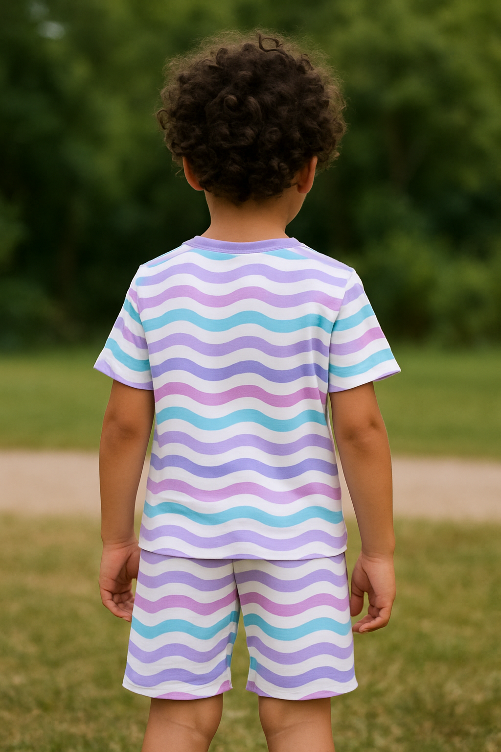 Wavy Whirl print set, kids co-ord summer outfit, polycotton kids nightwear, boys & girls teddy set, cute kids clothing, kids shorts and t-shirt set